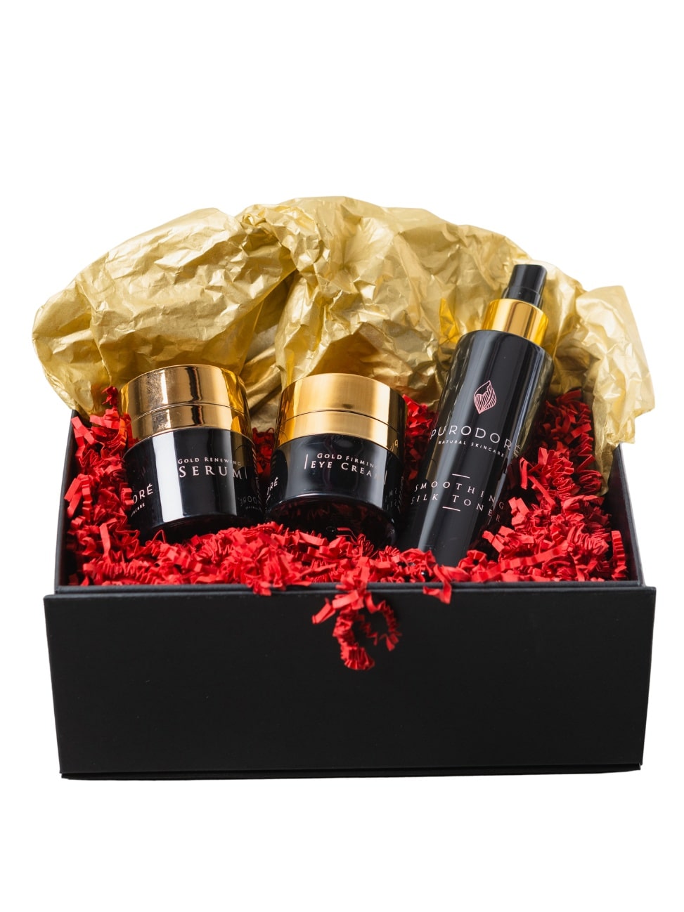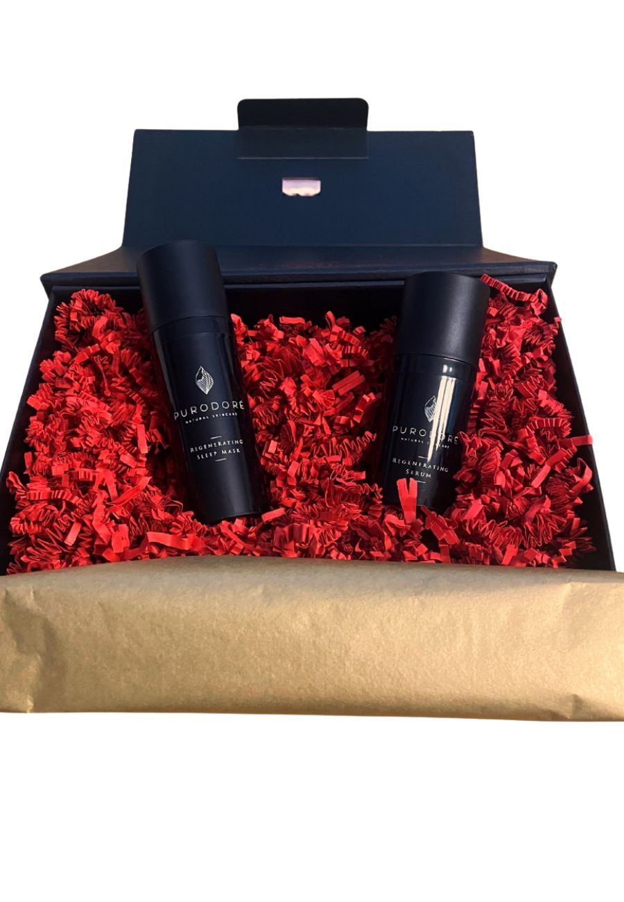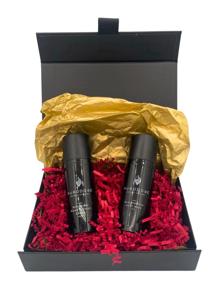 Upeasti pakattu lahjaboksi, sisältäen luottotuotteet Gold cream day and night sekä kosteuttava kasvosuihke. Ihana vaikka joululahjana.